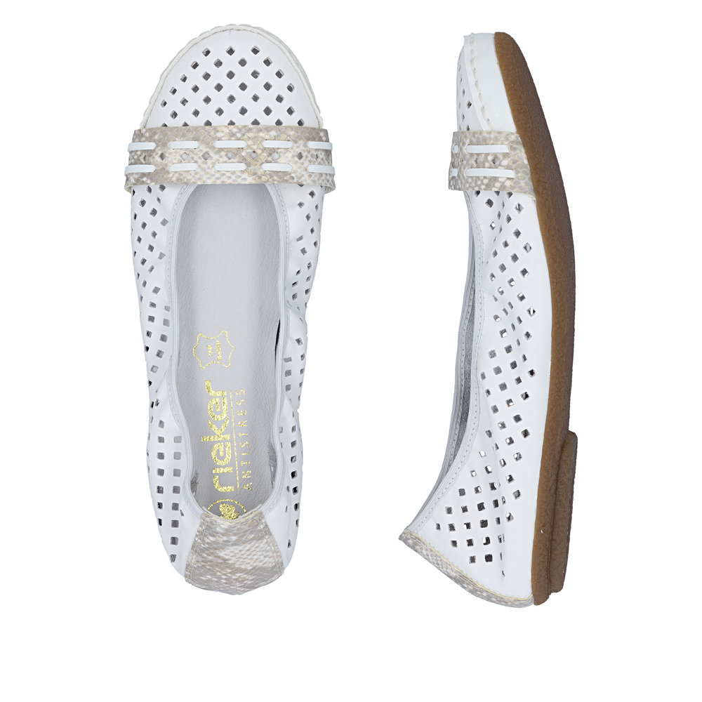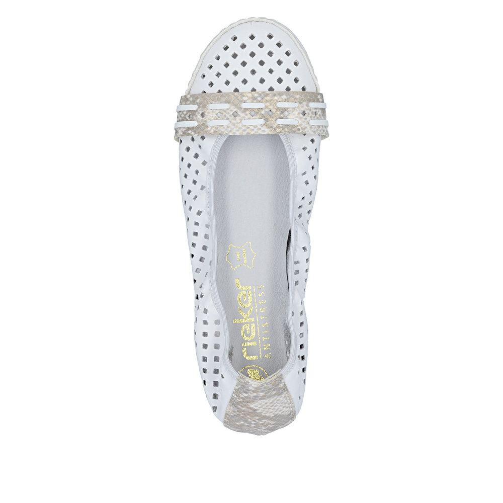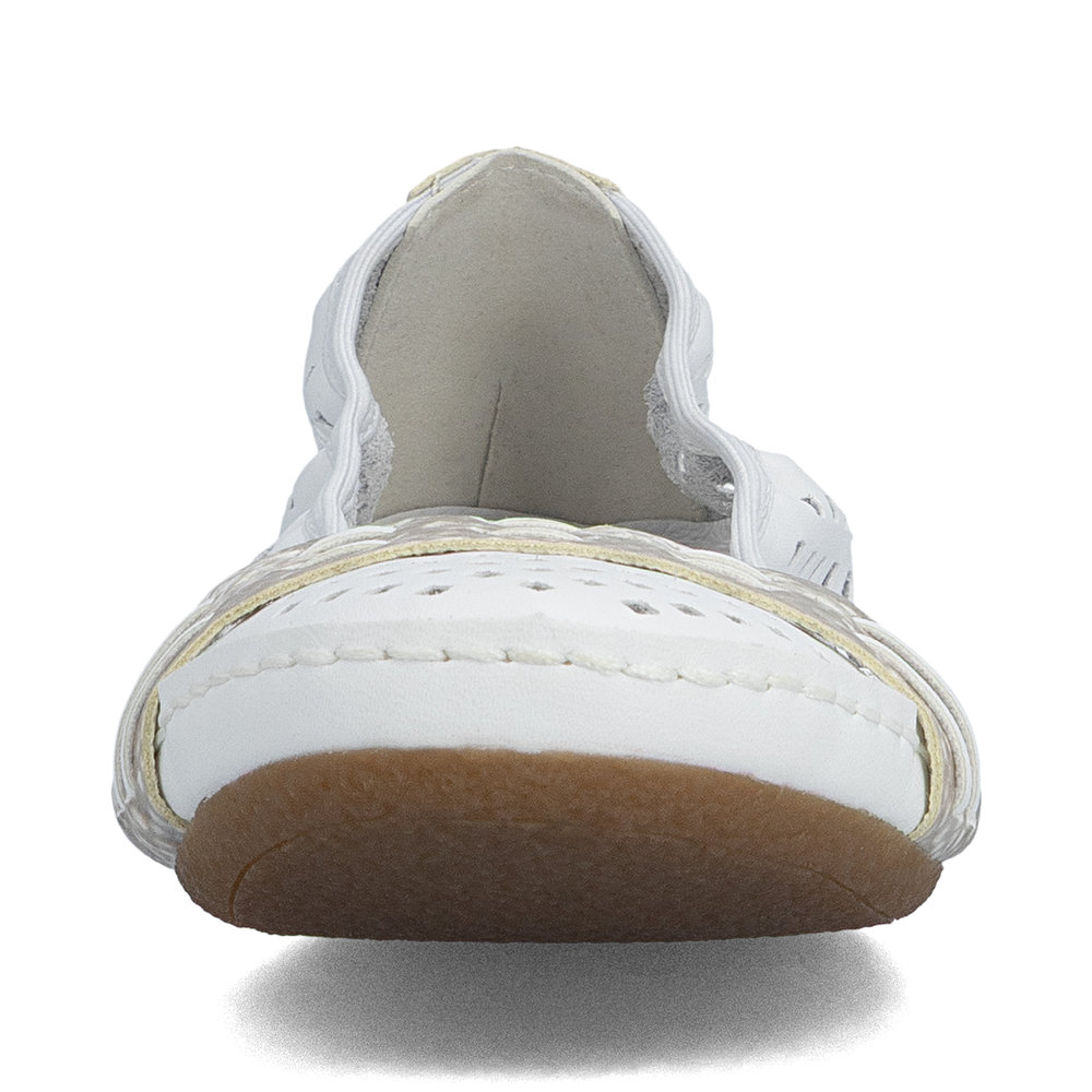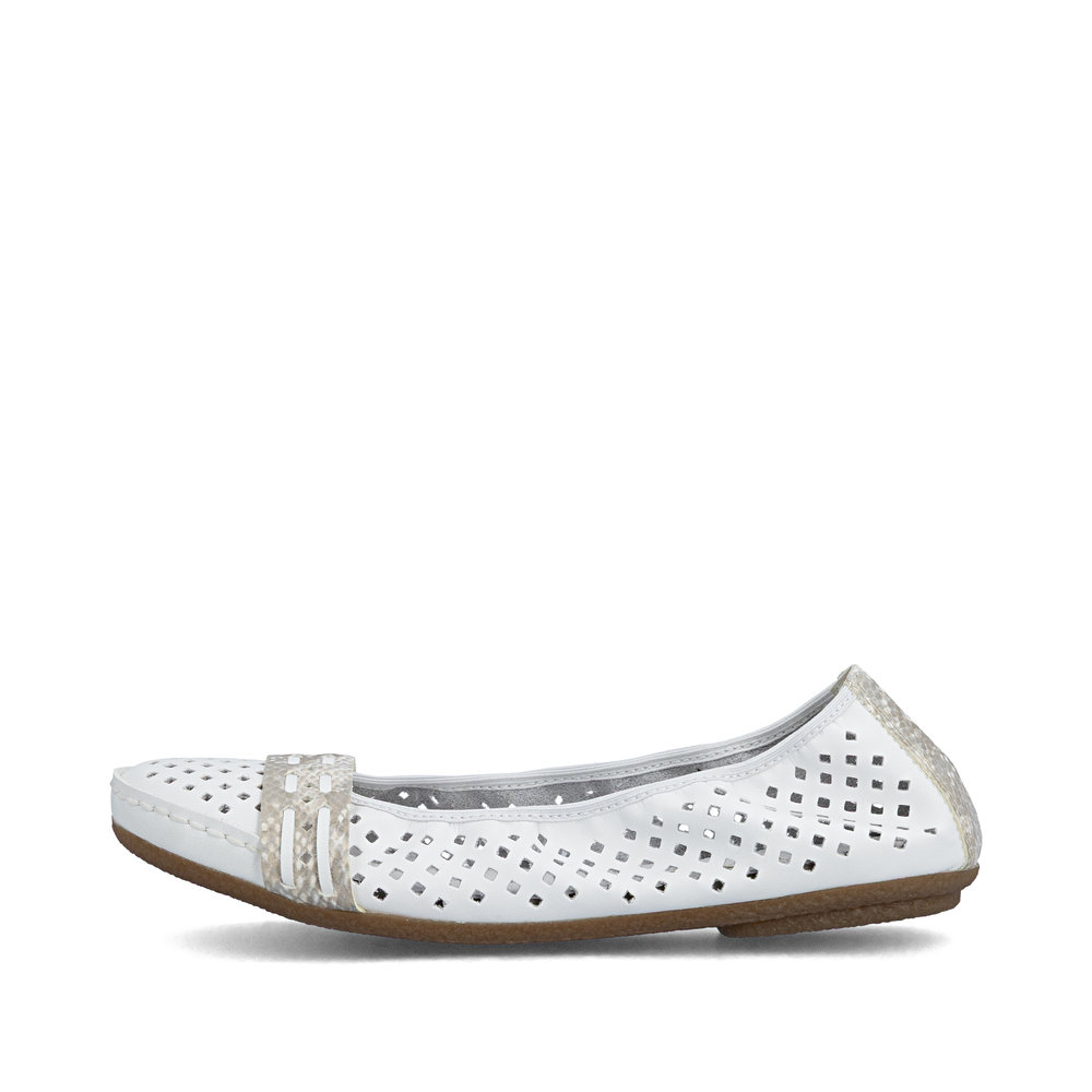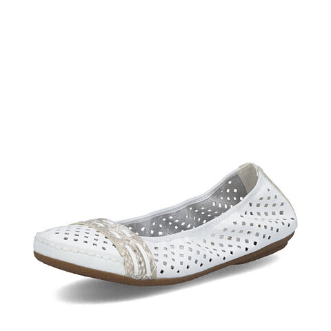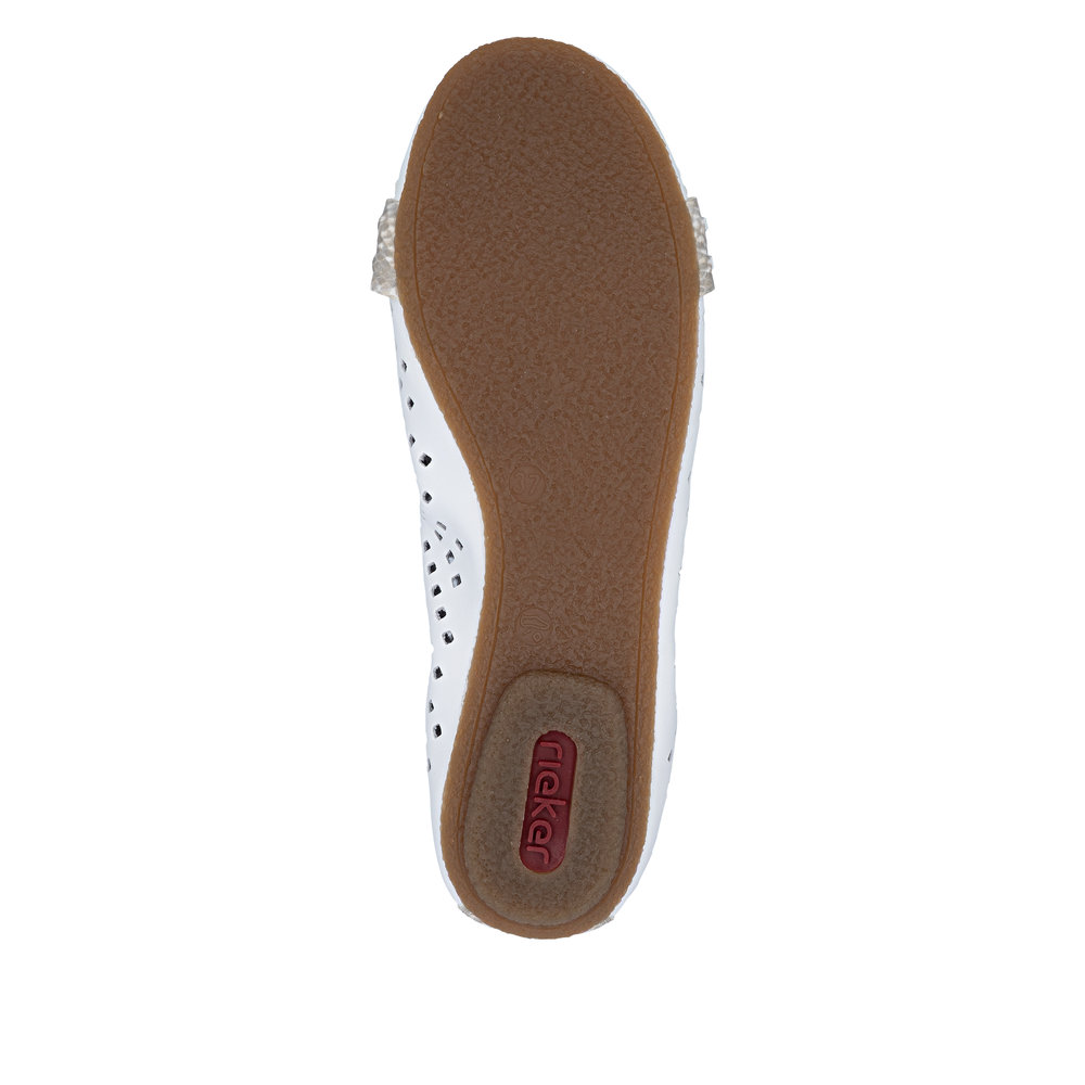 Женские балетки белого цвета от брэнда Rieker. Полнота Е 1/2. Модель 41430-81 выполнена на сплошной подошве, которая при ходьбе естественным образом перераспределяет вес на стопу и опорно-двигательный аппарат в целом. Это идеальный вариант для повседневной носки и подойдет тем женщинам, которые ставят удобство во главу угла. Материал верха: Кожа + иск. кожа. Без подкладки. Стелька: Кожа. Сезон: Лето. Балетки 41430-81 сертифицированы для продажи на территории России и полностью соответствуют ГОСТам.