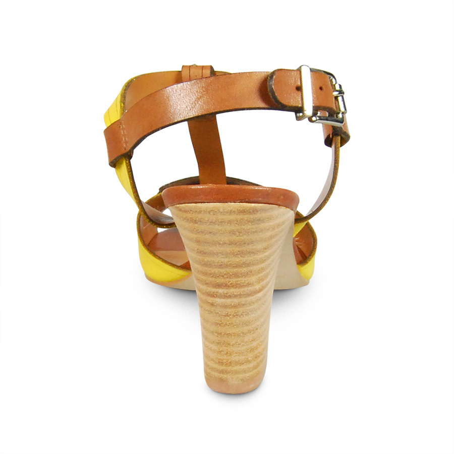 Выразительная модель босоножек от компании "INDIANA". Модель выполнена в современном стиле Color Block, что означает использование нескольких чистых цветов в одной модели, в данном случае это цвет охры и коричневый цвет. Декоративная пряжка из кожи - еще один штрих в продуманном дизайне. Каблук достаточно высокий, но при этом удобный. Верх модели выполнен из натуральной кожи. Красивый и стильный вариант для различных комбинаций. Производство: Бразилия.