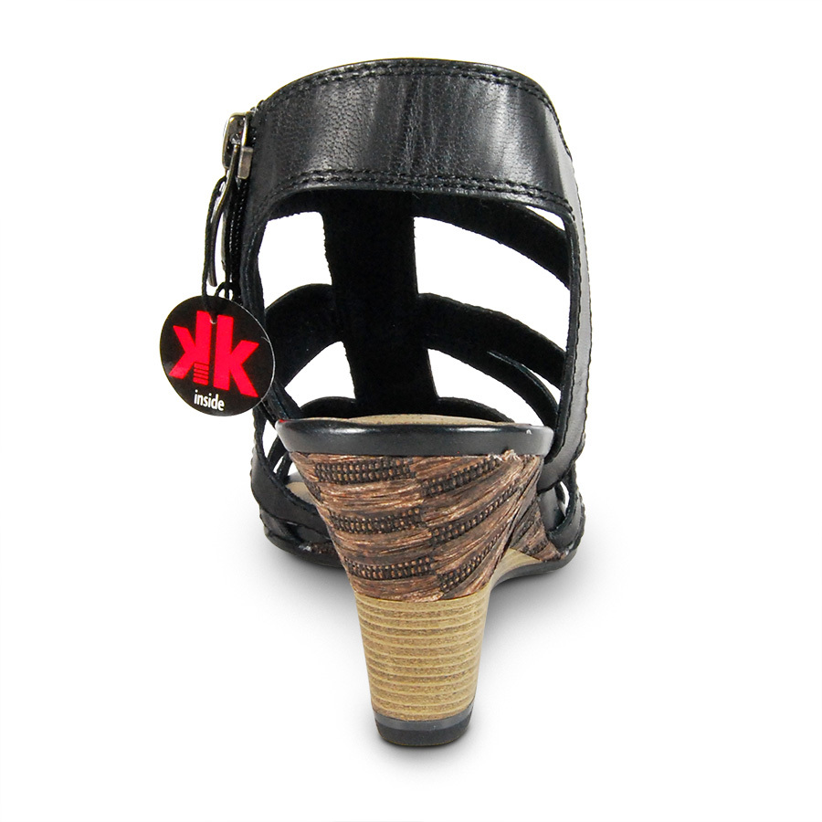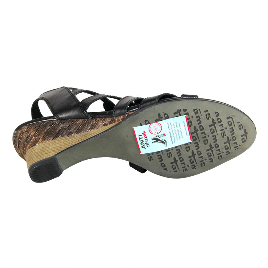 Красивые босоножки, выполненные из натуральной кожи черного цвета. Мягкие ремешки украсят ваши ножки, а изящная танкетка создаст необходимый комфорт.