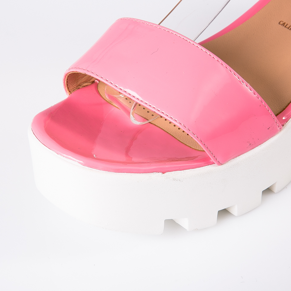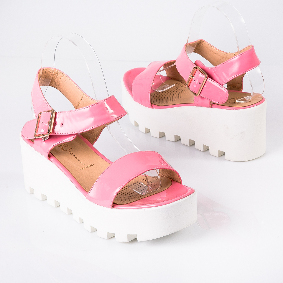 Актуальные летние босоножки на платформе 6 см, с ярко выраженным протектором. Модель выполнена в искусственной лаковой коже, несмотря на массивность подошвы пара чрезвычайно легкая. Отличный вариант для тех, кто ценит стиль и комфорт.