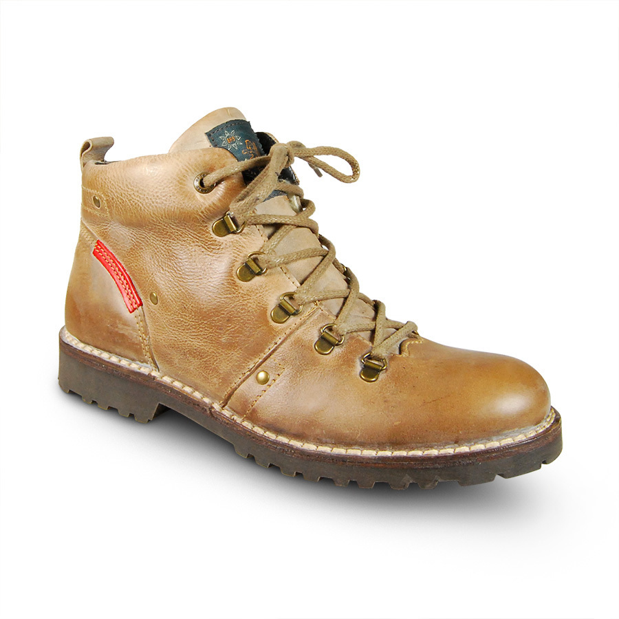 Удобные ботинки серо-коричневого цвета. Верх изготовлен из натуральной кожи, внутри натуральная шерсть, долго сохраняющая тепло. Непромокаемая подошва устойчива к перепадам температур. Уверенная походка благодаря глубокому протектору. Долговечные благодаря двойной прошивке по борту подошвы. Материал верха: натуральная кожа. Материал подкладки: натуральная шерсть. Производство: Португалия.