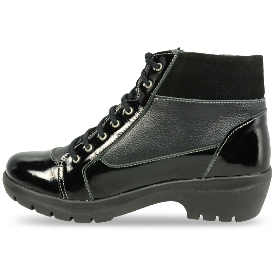 Женские ботинки черного цвета от брэнда Suave. Материал верха: Кожа. Материал внутренний: Шерсть. Материал подошвы: ТЭП. Страна происхождения: Португалия. Сезон: Весна-осень.