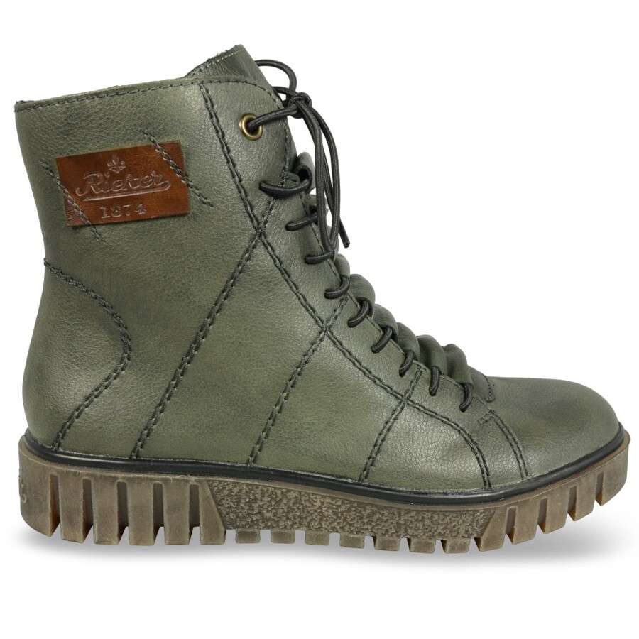 Женские ботинки зеленого цвета от брэнда Rieker. Полнота Е 1/2. Модель y3421-52 выполнена на сплошной подошве, которая при ходьбе естественным образом перераспределяет вес на стопу и опорно-двигательный аппарат в целом. Это идеальный вариант для повседневной носки и подойдет тем женщинам, которые ставят удобство во главу угла. Материал верха: Кожа + иск. кожа. Материал внутренний: Текстиль. Сезон: Весна-осень. Ботинки y3421-52 сертифицированы для продажи на территории России и полностью соответствуют ГОСТам.