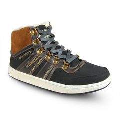 Удобные ботинки спортивного стиля. Толстая подошва не намокает и долго сохраняет тепло. Удобная широкая шнуровка. Сочетание черного, серого и коричневого делают эту модель привлекательной. Модель для тех, кто выбирает комфорт и легкость.