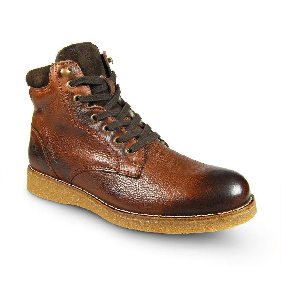 Ботинки коричневого цвета. Изготовлены из натуральной кожи. Очень теплые за счет толстой подошвы и подкладки из натуральной шерсти. Застегиваются на боковую молнию и шнуровку. Мягкий кант на заднике предотвращает натирание.