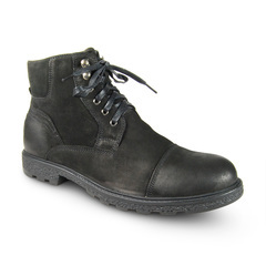 Черные ботинки из натурального нубука, подкладка выполнена из натурального меха. Застегиваются на боковую молнию и шнуровку. Усиленный жесткий мысок. Долговечные благодаря прошивке по всему периметру модели.