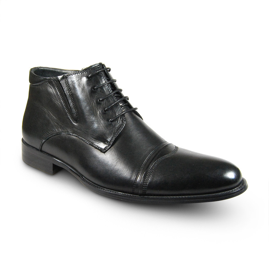 Элегантные черные ботинки из натуральной кожи, внутри подкладка из шерсти. Застегиваются на молнию. Декорированы шнуровкой. Сбоку резиновая вставка. Невысокий каблук.