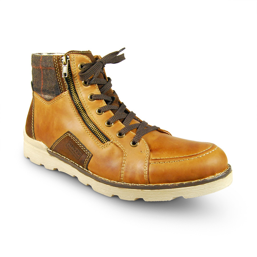 Материал верха: натуральная кожа. Материал подкладки: натуральная шерсть. Интересная модель этих ботинок привлечет внимание молодых и активных людей. Натуральная кожа и шерстяной подклад подарят тепло и устойчивость к влаге. Удобная двойная молния по бокам. Сочетание цветовой палитры, задника с геометрическим рисунком, косая молния не оставят эту модель незаметной для окружающих.