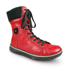 Яркие кеды для любительниц находиться в центре внимания. Материал верха: искусственная кожа. Материал подкладки: натуральная шерсть. Высокое голенище предотвращает попадание снега внутрь. Шнуровка плотно удерживает ногу. Удобно застегивать на боковую молнию. Вязаный кант на заднике предотвращает натирание голеностопа.