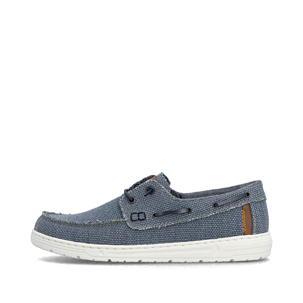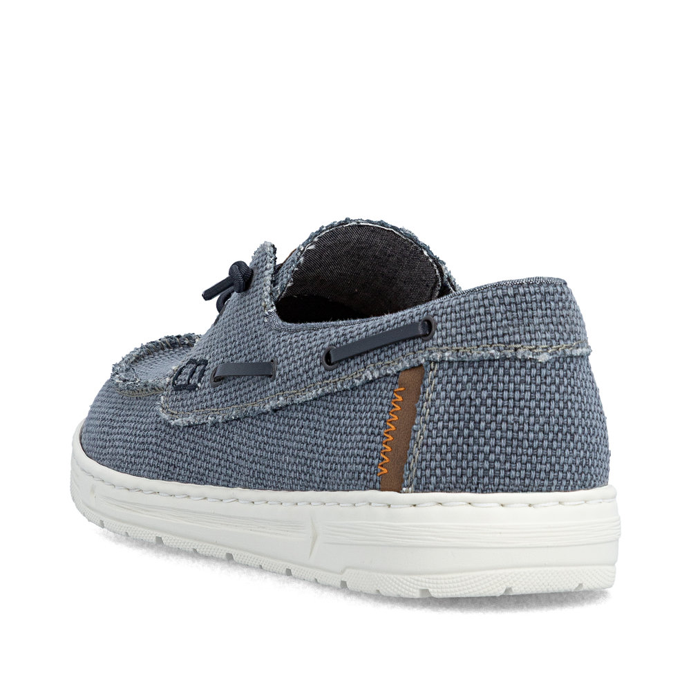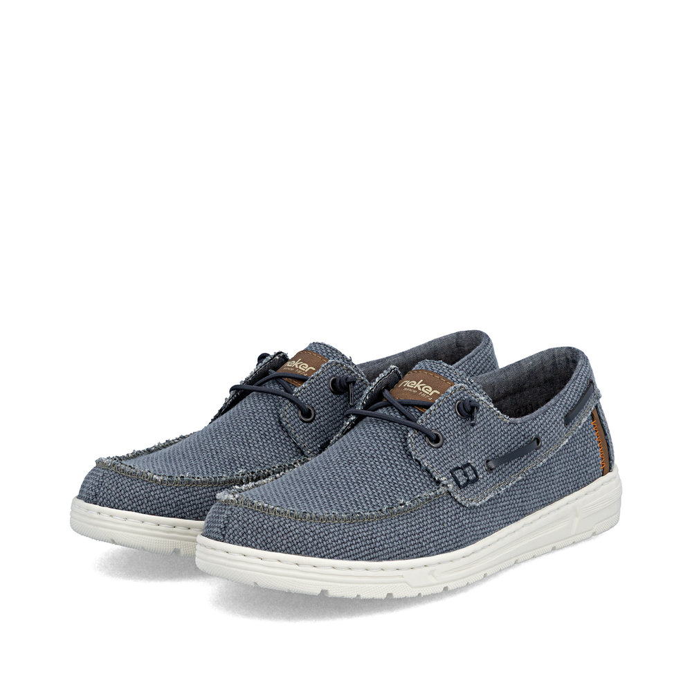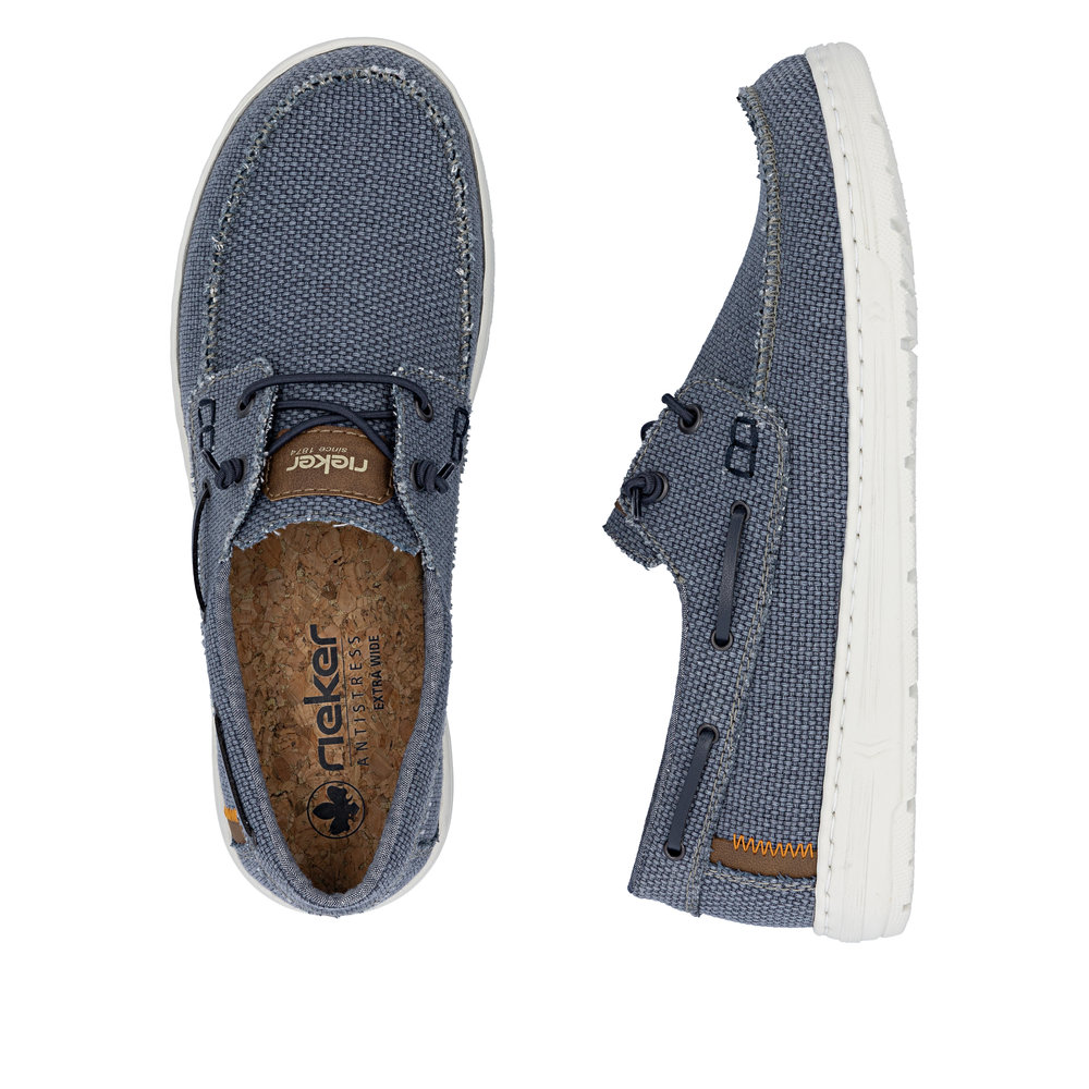 Мужские мокасины синего цвета от брэнда Rieker. Полнота H (увеличенная). Модель 08664-12 выполнена на сплошной подошве, которая при ходьбе естественным образом перераспределяет вес на стопу и опорно-двигательный аппарат в целом. Это идеальный вариант для повседневной носки и подойдет тем мужчинам, которые ставят удобство во главу угла. Материал верха: Текстиль. Материал внутренний: Текстиль. Стелька: пробка. Сезон: Лето. Мокасины 08664-12 сертифицированы для продажи на территории России и полностью соответствуют ГОСТам.