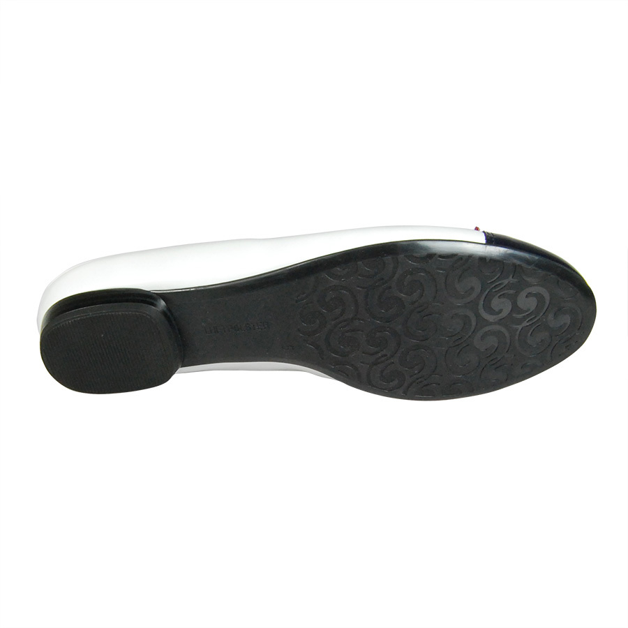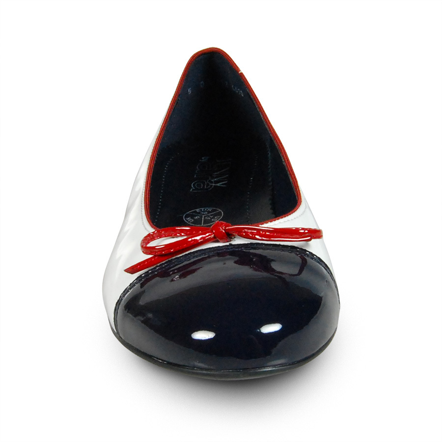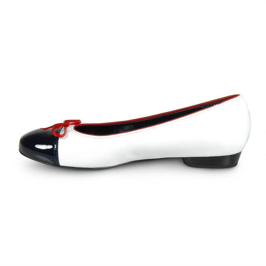 Женские туфли-балетки на низком широком кабуке. Мыс выполнен в контрастном цвете. Модель в модном в этом сезоне морском стиле. Полнота G - для нормальной(средней) и широкой ноги.