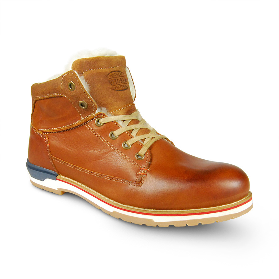 Материал верха: натуральная кожа. Материал подкладки: натуральная шерсть. Зимние ботинки ярко рыжего цвета не останутся незаметными. Удобные и теплые благодаря подкладу их натуральной шерсти. Оригинальность модели придает яркая окантовка по подошве и черная вставка на каблуке. Глубокий протектор на подошве придает комфорт при ходьбе.
