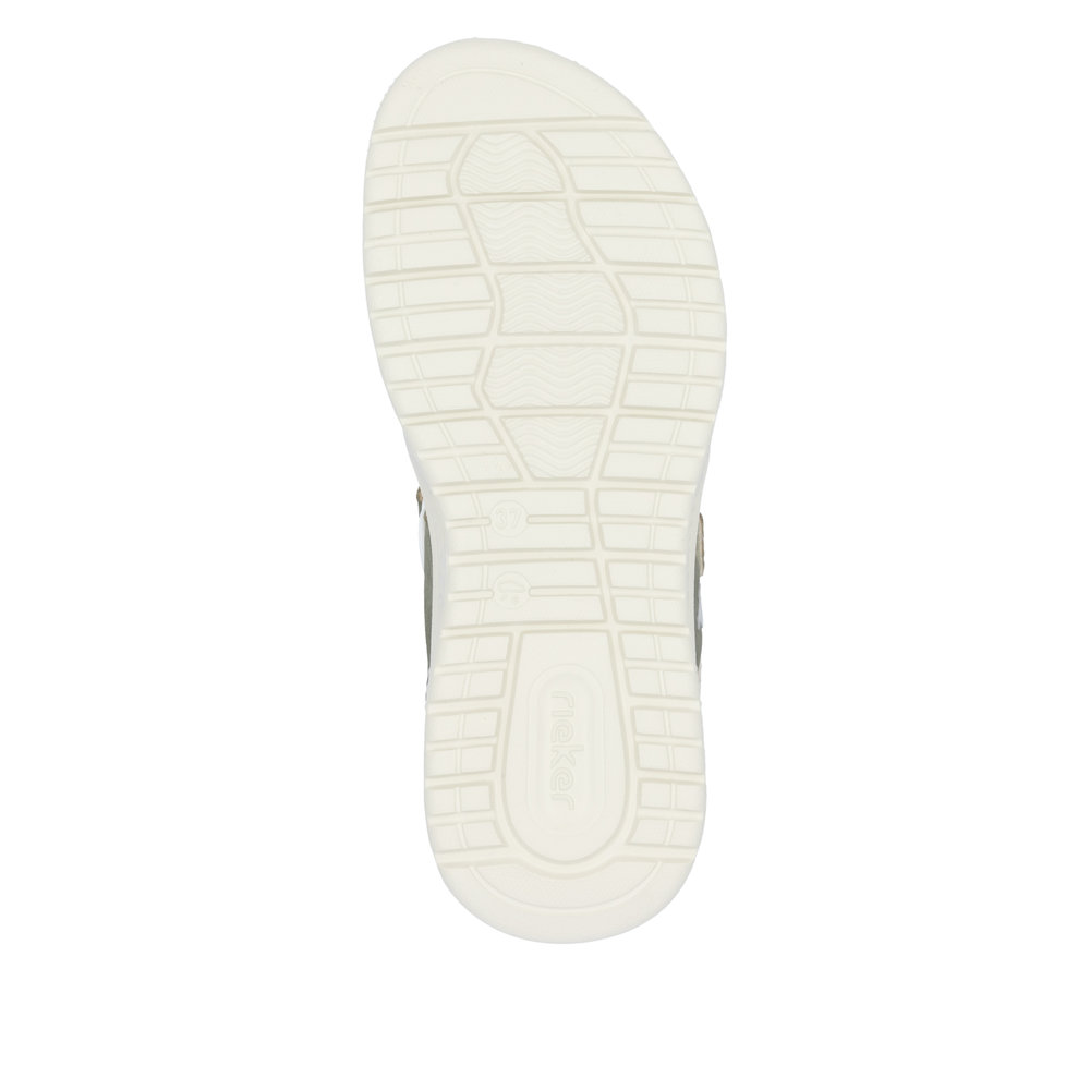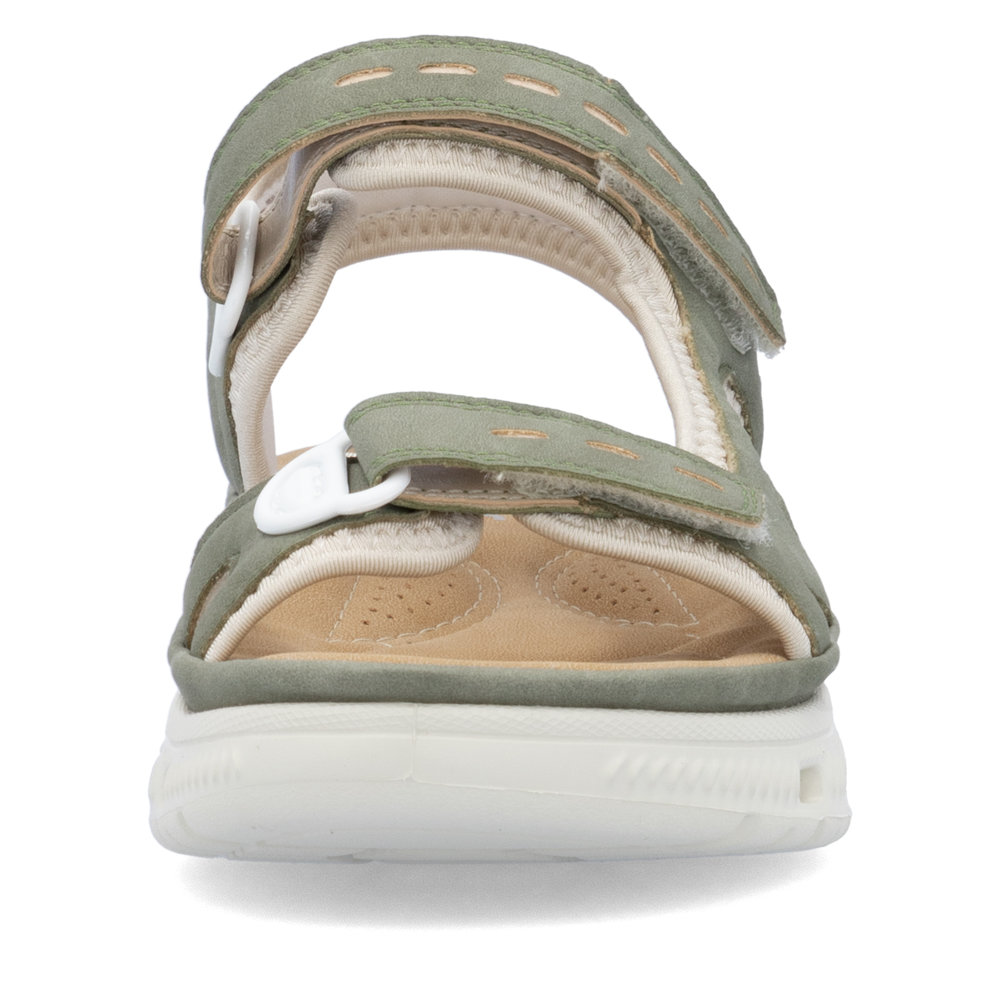 Женские сандалии зеленого цвета от брэнда Rieker. Полнота F. Модель сандалий Rieker 64066-52 выполнена на сплошной подошве, которая при ходьбе естественным образом перераспределяет вес на стопу и опорно-двигательный аппарат в целом. Это идеальный вариант для повседневной носки и подойдет тем женщинам, которые ставят удобство во главу угла. Материал верха: Иск. кожа + текстиль. Материал внутренний: Текстиль. Материал подошвы (ЭВА) идеально подходит для комфортной носки в благоприятных условиях лета. Сезон: Лето. Сандалии сандалии rieker 64066-52 сертифицированы для продажи на территории России и полностью соответствуют ГОСТам.
