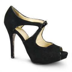 Шикарные замшевые туфли для торжественного выхода. Высокая шпилька подчернет стройность и красоту Ваших ног. Открытый мыс, оригинальные декоративные вырезы по бокам и кокетливая застежка на тонком лаковом ремешке.