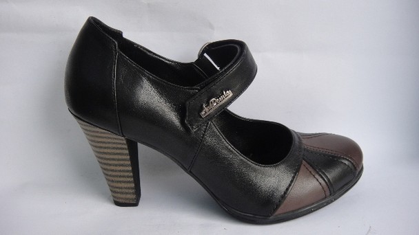 Материал верха и подкладки: натуральная кожа. Стильный туфли на устойчивом каблуке. Мысок выполнен из кожи двух цветов: черной и коричневой. Ремешок на липучке на подъеме поможет отрегулировать идеальную посадку туфель по ноге.