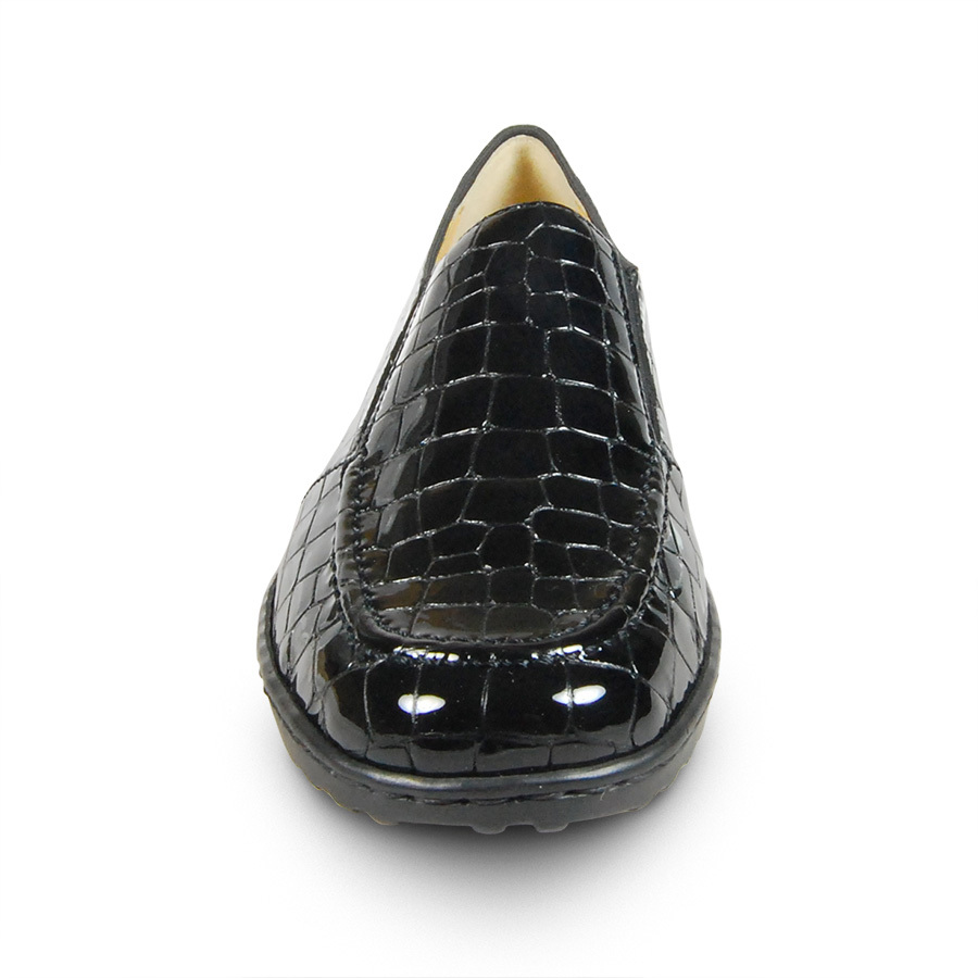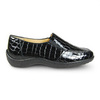Женские туфли серии "комфорт". Натуральная лаковая кожа имитирует кожу рептилии. Вставка резинки обеспечит еще больший комфорт. Вариант для тех женщин, кто ищет комфорт, но при этом следит за веяниями моды. Полнота G - для нормальной(средней) и широкой ноги.
