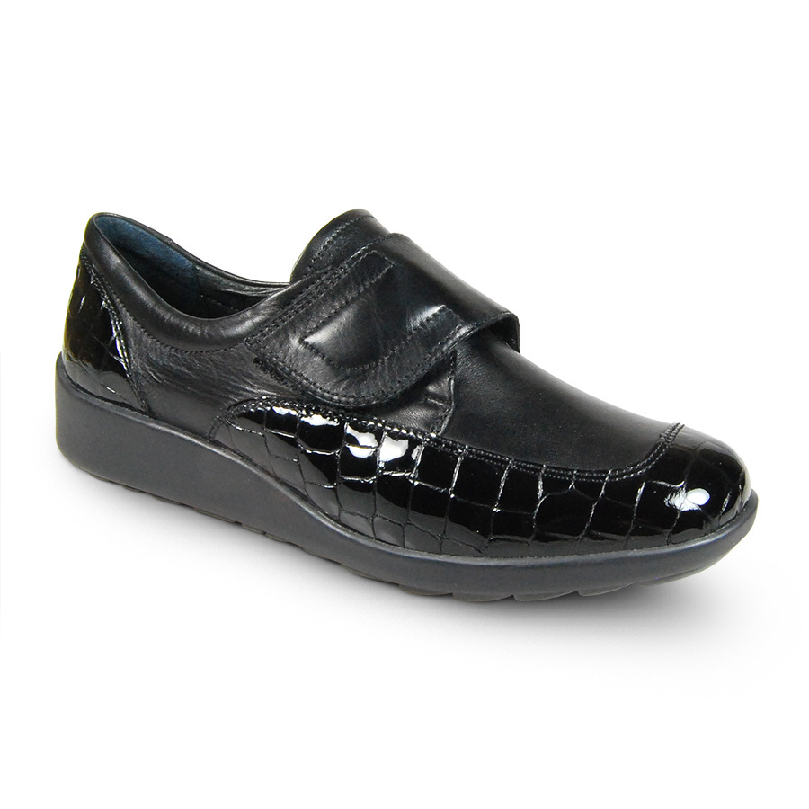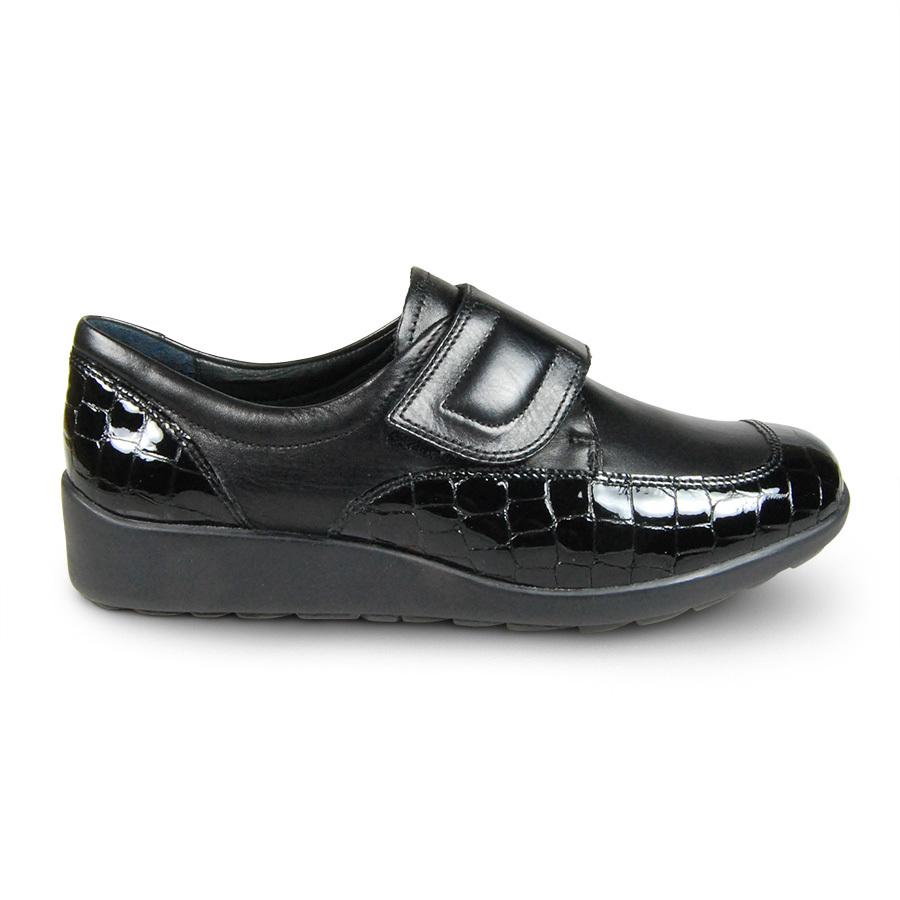Женские туфли. Удобная застежка на липучку. Невысокая танкетка. В этой модели все призвано обеспечить максимальный комфорт ее обладательнице. Полнота H - увеличенная полнота для широкой ноги с высоким подъемом.