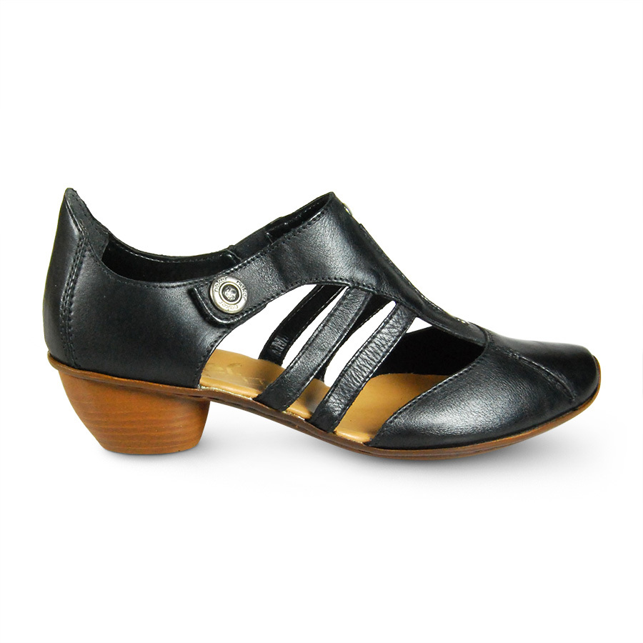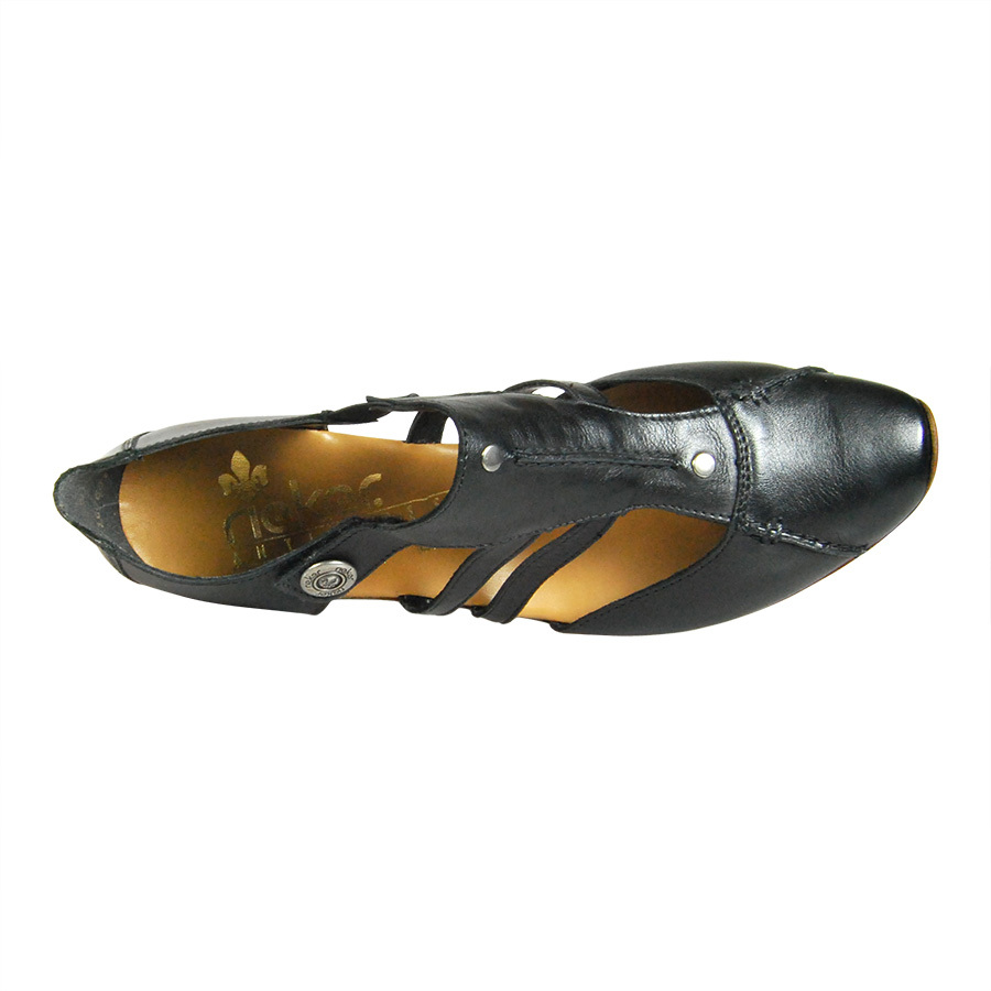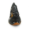 Туфли с закрытой носочной частью и пяткой, выполненные из натуральной кожи. Перепонка на кнопке, ремешки по подъему, слегка задранный мыс и удобный каблук - модель оригинальна, красива и очень удобна.