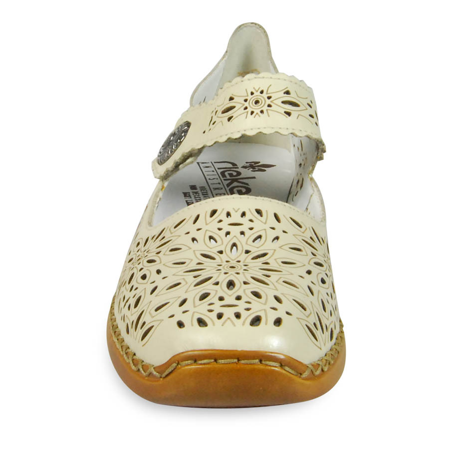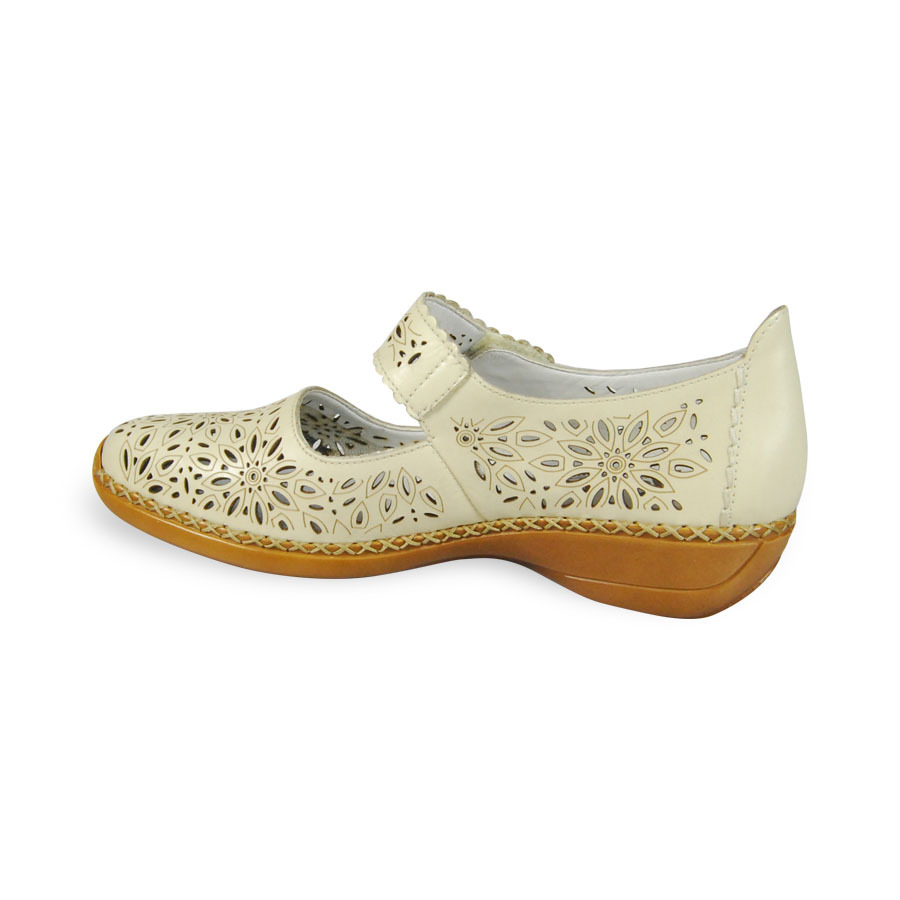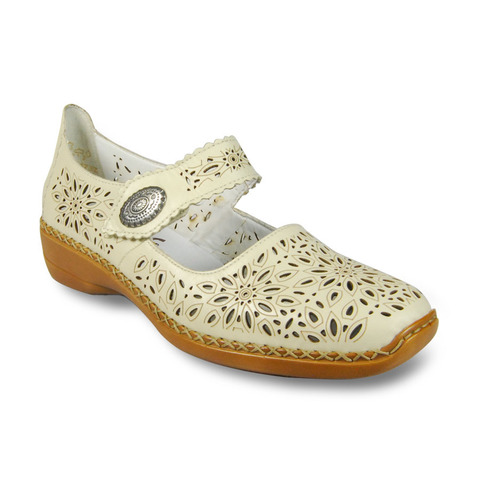 Легкая и удобная летняя модель из натуральной кожи молочного цвета.. Дышащий материал гигроскопичен, отлично впитывает неприятные запахи. Перфорация в виде цветов украшает эту модель. Низ прошит декоративным швом. Гибкая подошва придает легкость походке, не нагружая стопу.