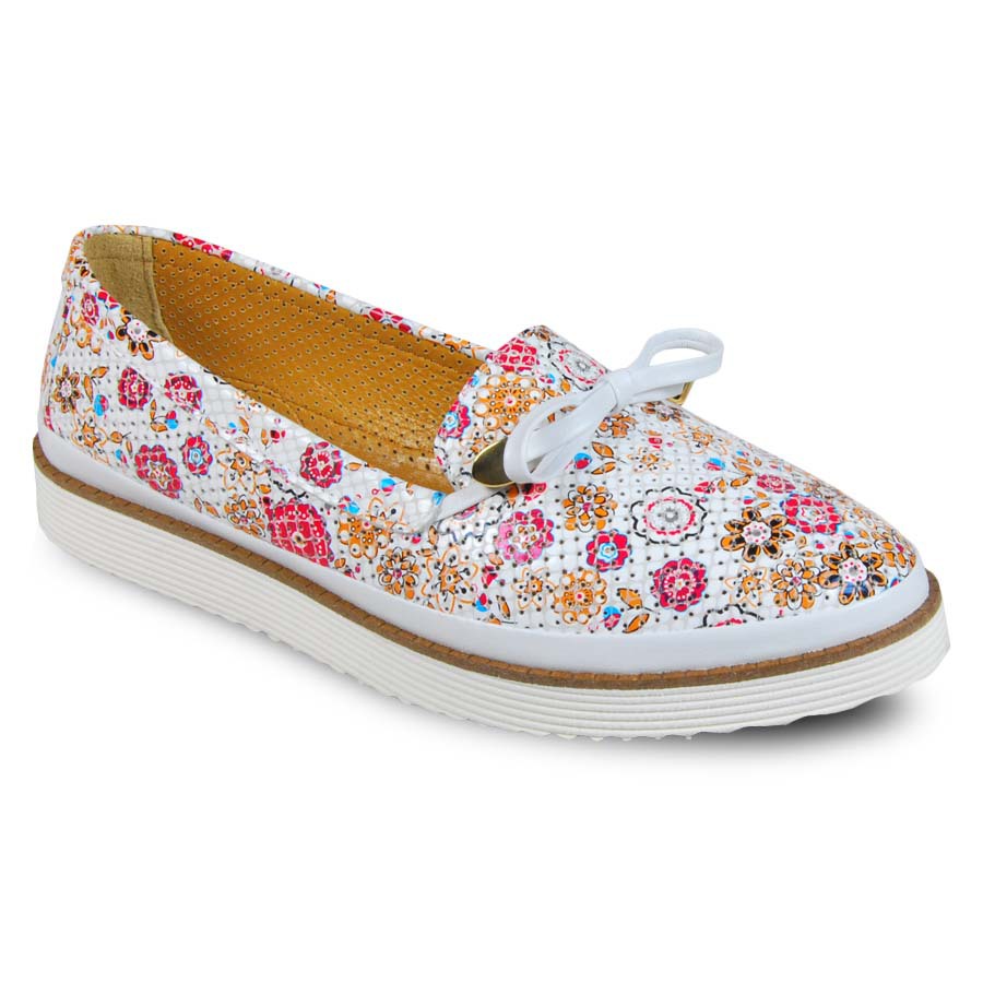 Материал верха : натуральная кожа. Оригинальная модель выполнена из мягкой перфорированной кожи с актуальным цветочным принтом. Декорирована изящным милым бантом. Удобная эргономичная колодка, гибкая рифленая подошва, анатомическая кожаная дышащая стелька - идеальные составляющие обуви. Интересный дизайн обуви придаст уникальную индивидуальность Вашему образу. Такая обувь, по праву, займет достойное место в Вашем обувном гардеробе.