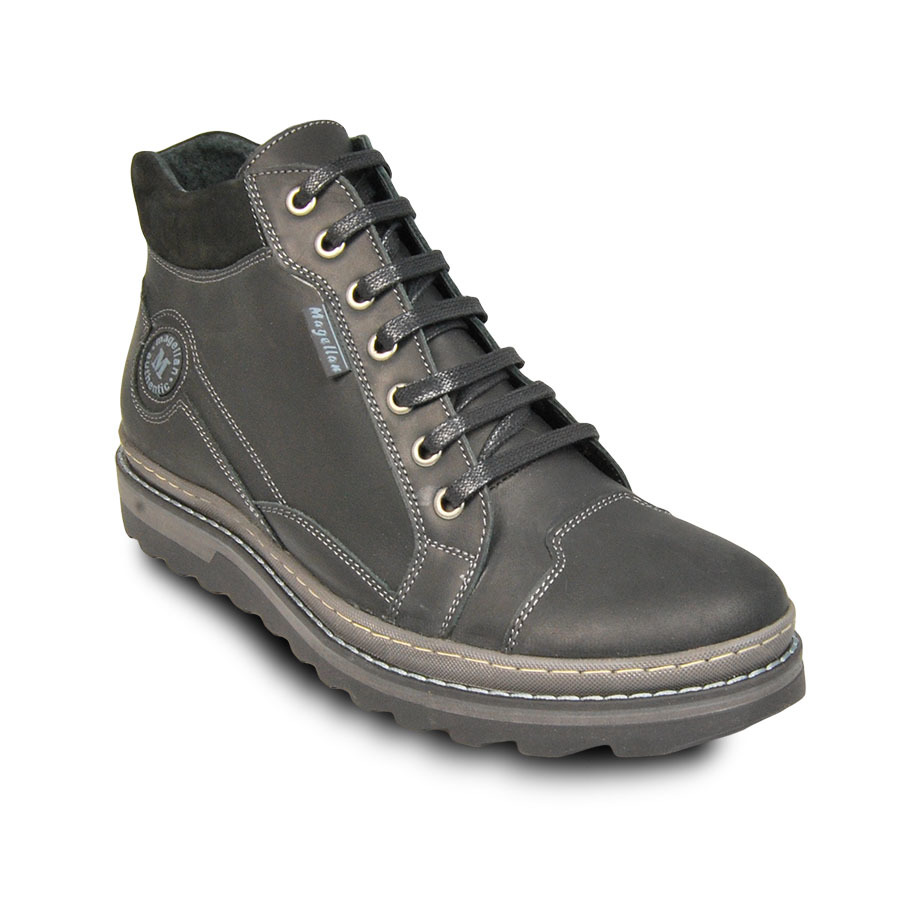 Мужские ботинки – обязательный элемент зимнего гардероба. Ботинки Magellan выполнены из натуральной кожи практичного черного цвета. Шнуровка позволит отрегулировать модель точно по ноге, а боковая молния обеспечит удобство обувания. Подкладка из натурального меха – оптимальный вариант для зимних холодов. Рисунок протектора в виде крупных зубьев делает ботинки более устойчивыми.