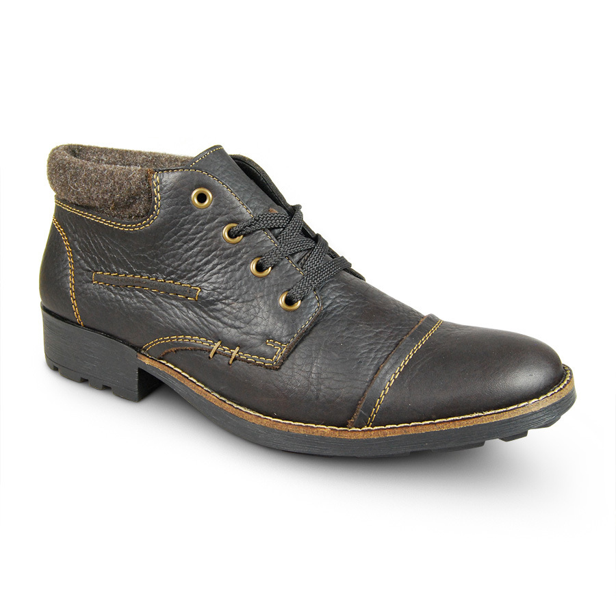Практичные ботинки коричневого цвета. Декорированы прострочкой и меховым отворотом. Удобный подъём дарит комфорт при длительной ходьбе. Шипы на носке и пятке улучшают сцепление с поверхностью.