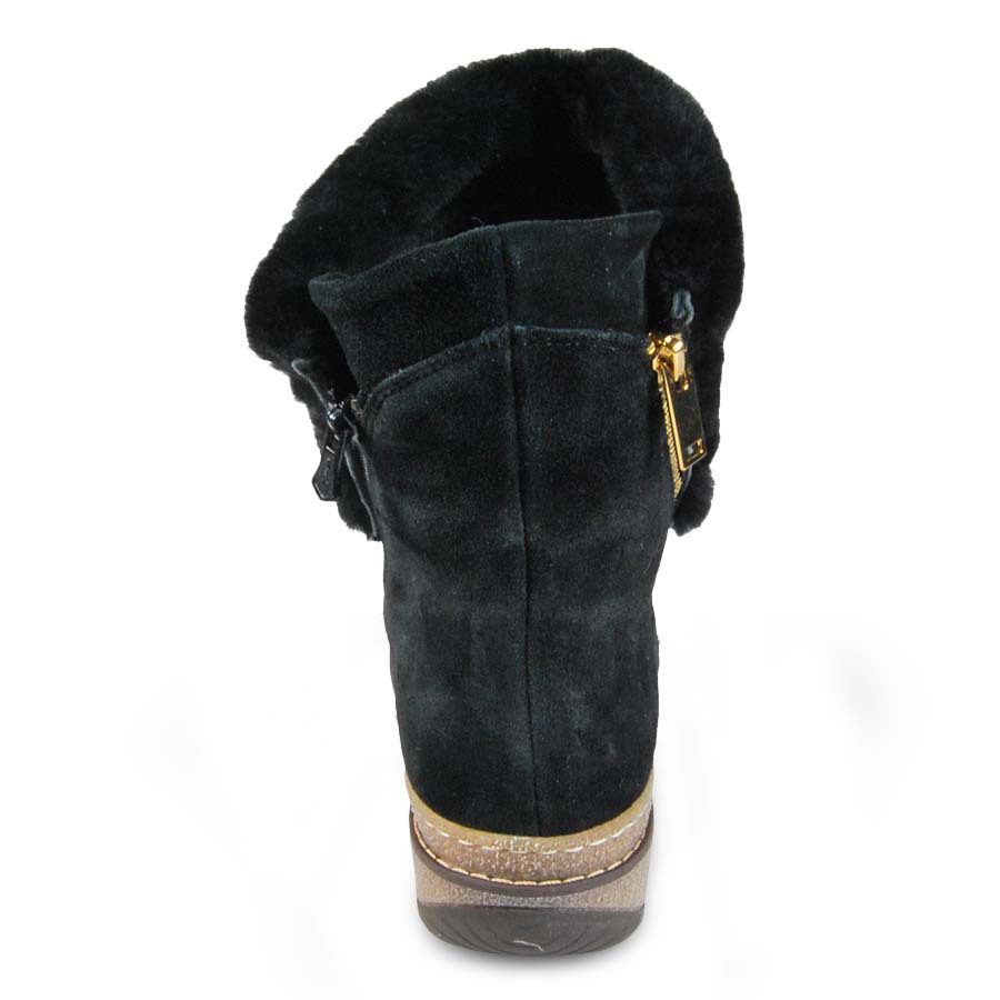 Неповторимые зимние полусапожки выполнены в натуральном качественном велюре практичного черного цвета. Пара декорирована металлической фурнитурой и меховой опушкой. Подкладка из натурального меха обеспечит комфортный микроклимат при носке. Идеальная пара для Вашего стильного образа.