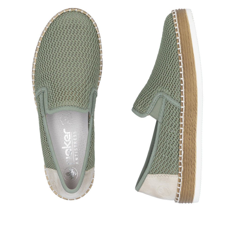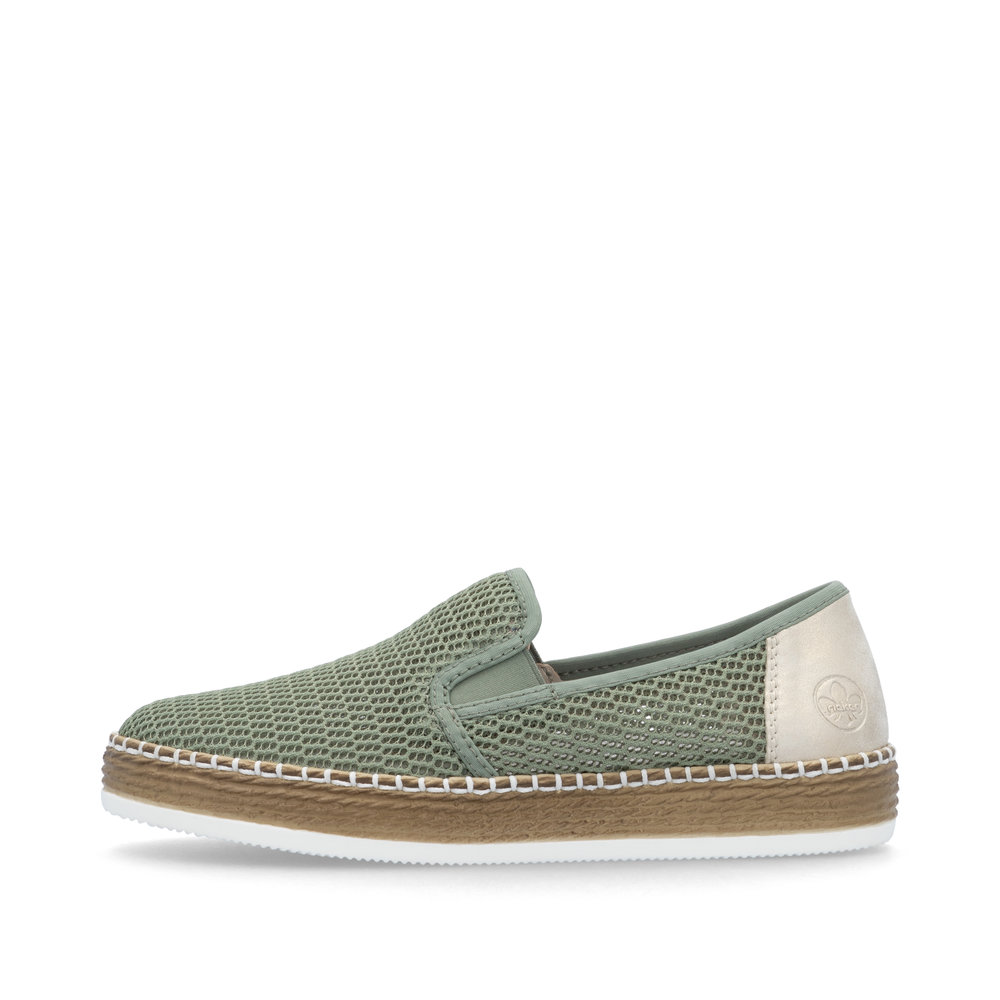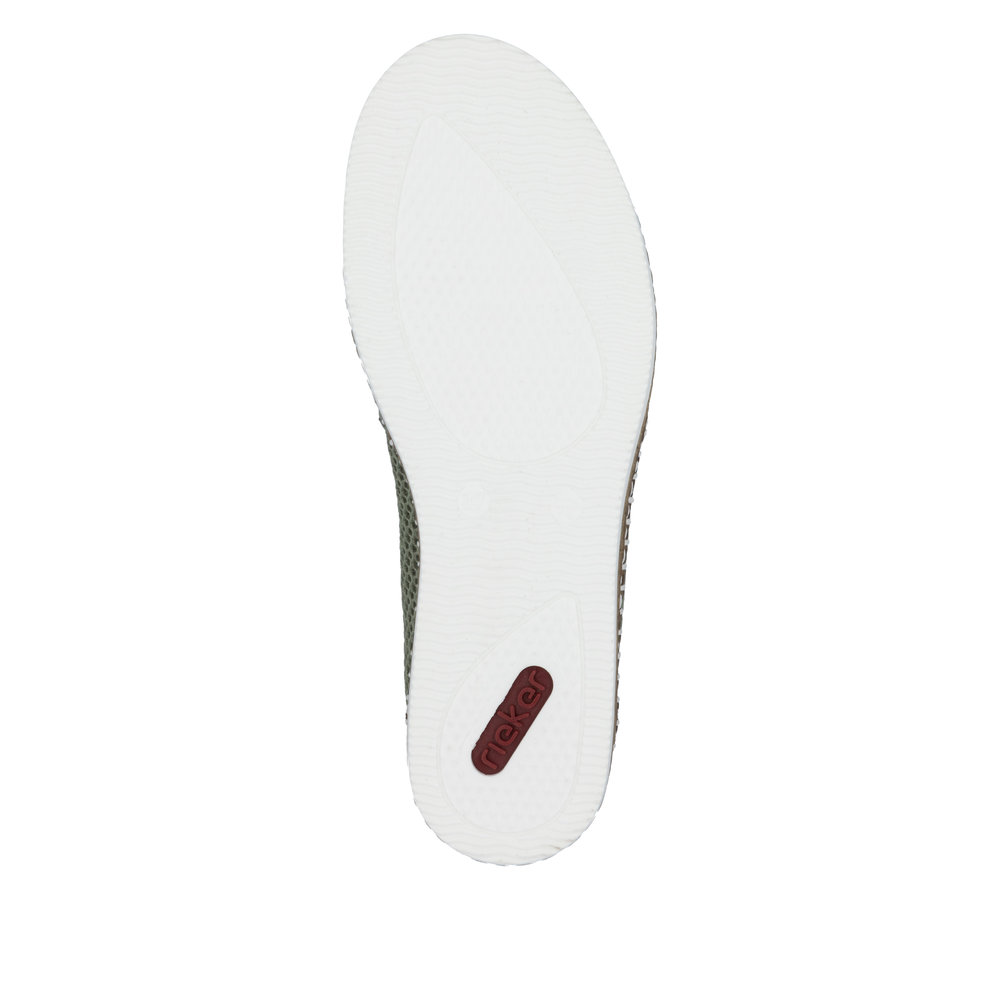 Женские слипоны зеленого цвета от брэнда Rieker. Полнота F. Модель l7873-52 выполнена на сплошной подошве, которая при ходьбе естественным образом перераспределяет вес на стопу и опорно-двигательный аппарат в целом. Это идеальный вариант для повседневной носки и подойдет тем женщинам, которые ставят удобство во главу угла. Материал верха: Текстиль + иск. кожа. Материал подошвы (ПУ) идеально подходит для комфортной носки в благоприятных условиях лета. Сезон: Лето. Слипоны l7873-52 сертифицированы для продажи на территории России и полностью соответствуют ГОСТам.