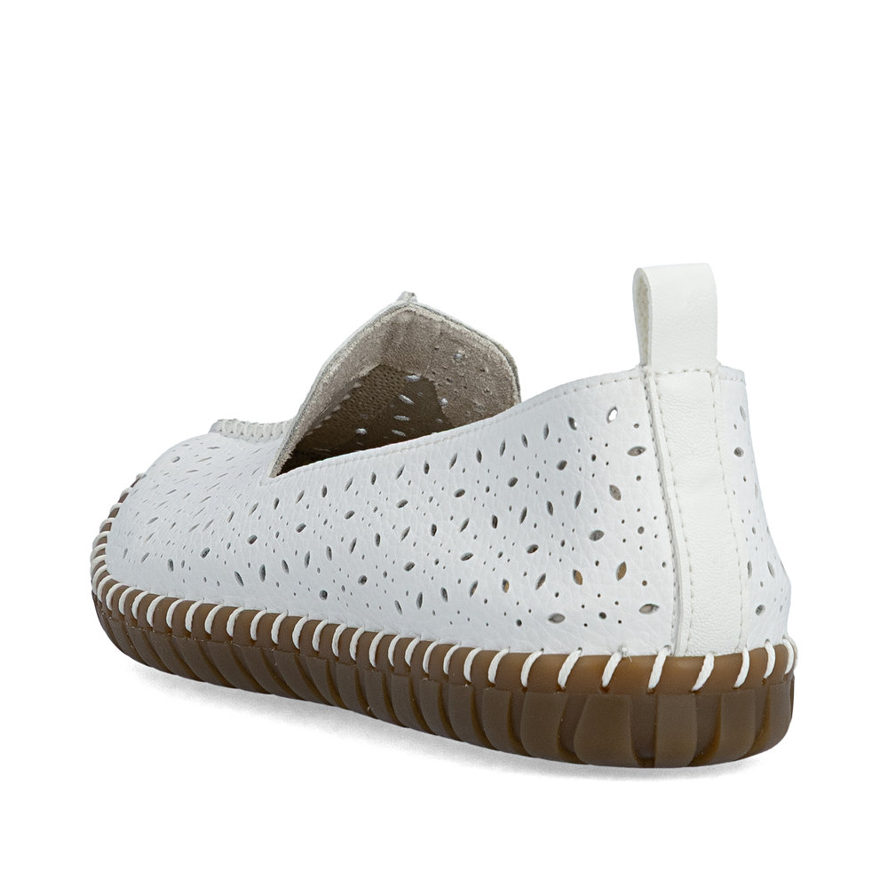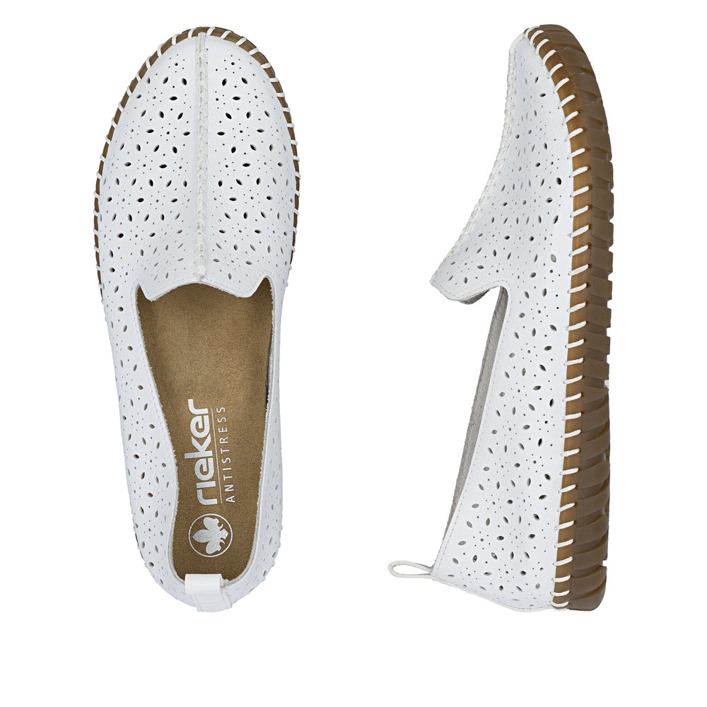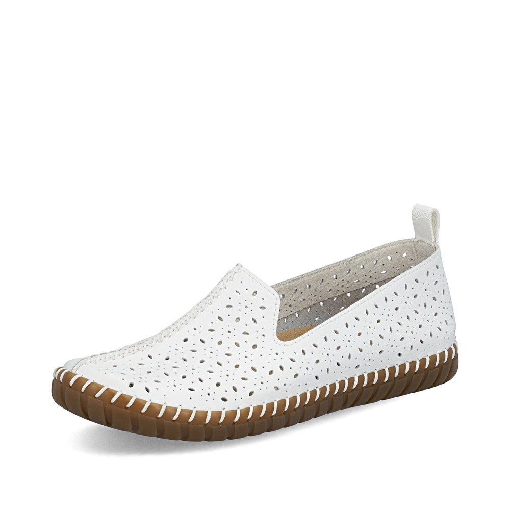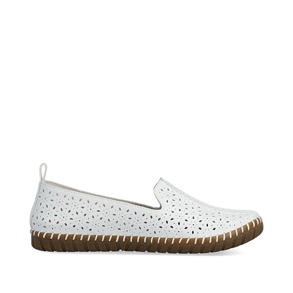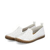 Женские слипоны белого цвета от брэнда Rieker. Полнота F 1/2. Модель m2853-80 выполнена на сплошной подошве, которая при ходьбе естественным образом перераспределяет вес на стопу и опорно-двигательный аппарат в целом. Это идеальный вариант для повседневной носки и подойдет тем женщинам, которые ставят удобство во главу угла. Материал верха: Кожа. Сезон: Лето. Слипоны m2853-80 сертифицированы для продажи на территории России и полностью соответствуют ГОСТам.