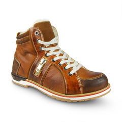 Практичные ботинки спортивного стиля. Теплые благодаря натуральной коже и подкладке из шерсти. Глубокий протектор на гибкой подошве дарит чувство комфорта при ходьбе. Подошва устойчива к перепадам температур и скольжению. Сбоку декорированы молнией. Материал верха: натуральная кожа. Материал подкладки: натуральная шерсть.