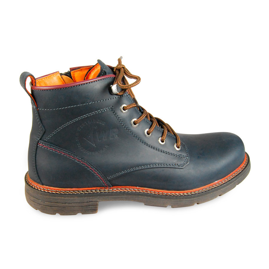 Стильные ботинки WESTRIDERS. Модель выполнена из высококачественной износоустойчивой кожи темно-синего цвета. Модель на прочной рельефной подошве. Отличная обувь на каждый день. Подкладка: натуральная шерсть.
