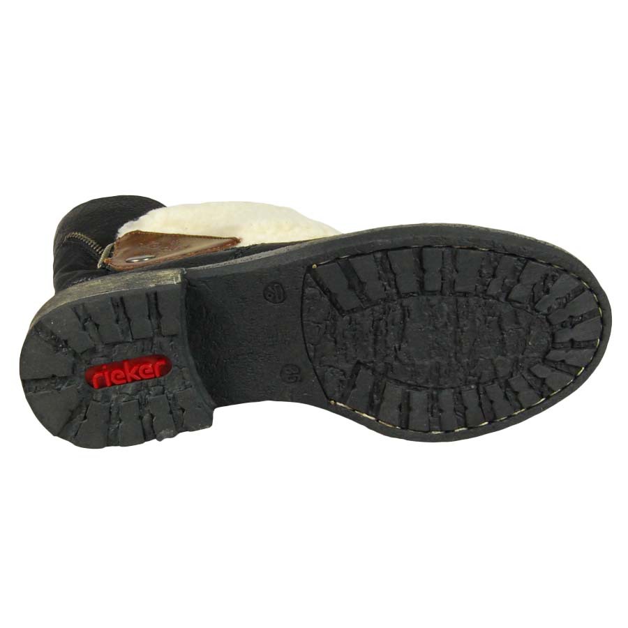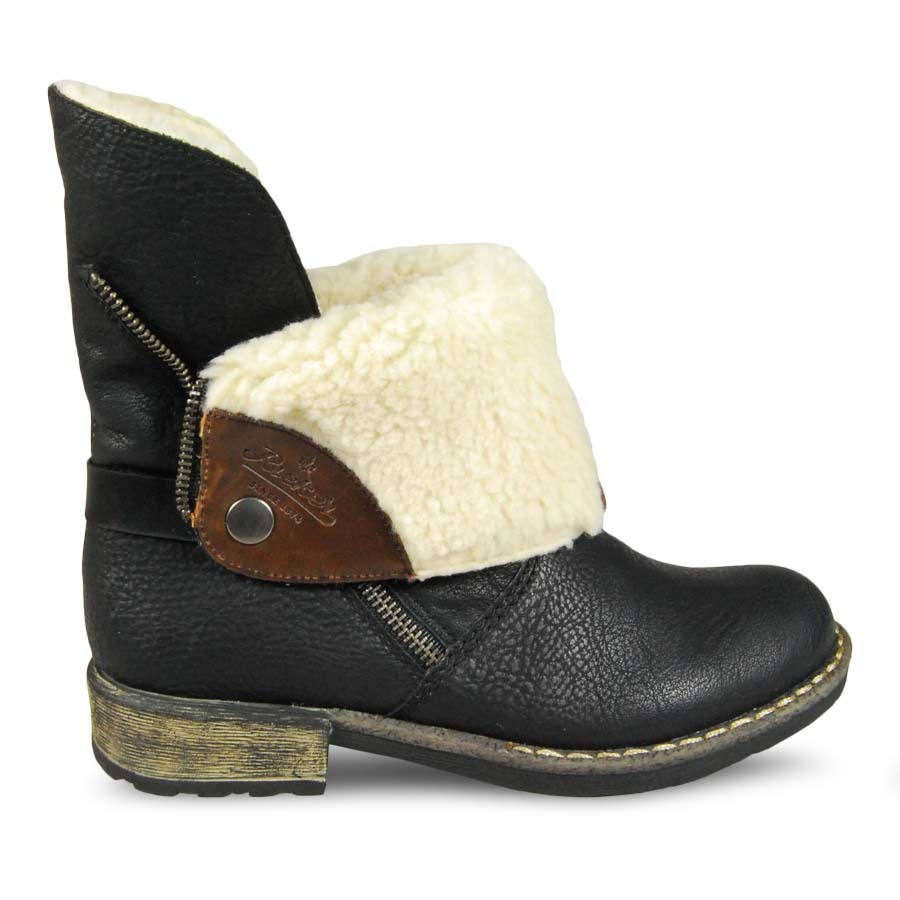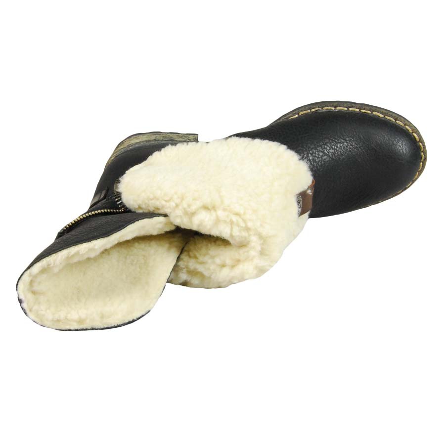 Практичные женские ботинки от Rieker - стильная и привлекательная обувь для современной девушки. Верх выполнен из высококачественной искусственной кожи и дополнен отворотом из шерсти. Функциональная застежка-молния позволяет надёжно зафиксировать обувь на ноге.