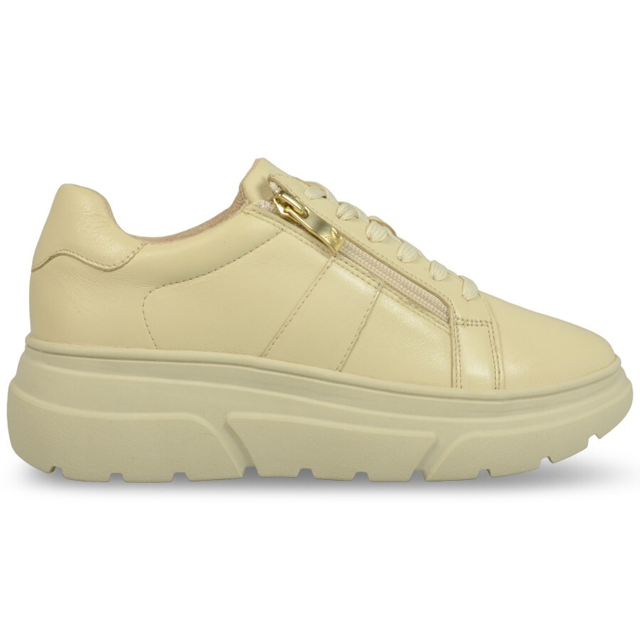 Женские кроссовки бежевого цвета от брэнда Caprice. Модель выполнена на низком каблуке. Материал верха: Кожа. Материал внутренний: Текстиль. Сезон: Весна-осень.