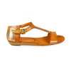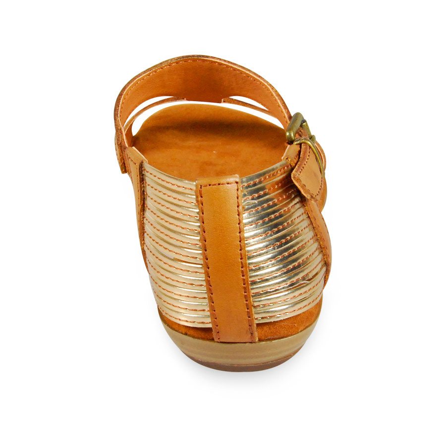 Материал верха: натуральная кожа. Легкие и удобные сандалии выполнены из мягкой натуральной кожи. Пяточная часть декорирована вставкой из золотистой кожи. Модель дополнена фиксирующей застежкой в районе щиколотки. Гибкая тонкая подошва и дышащая стелька - все для удобства Ваших ног.