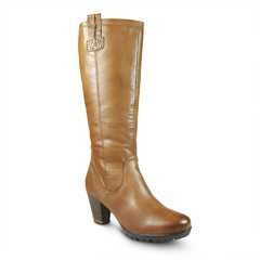 Женские сапоги из натуральной плотной кожи. Высота голенища 36 см, объем 38 см. Материал подкладки: натуральная овечья шерсть. Высота каблука - 7 см. Амортизатор Анти Шок, подошва с протектором. Полнота G