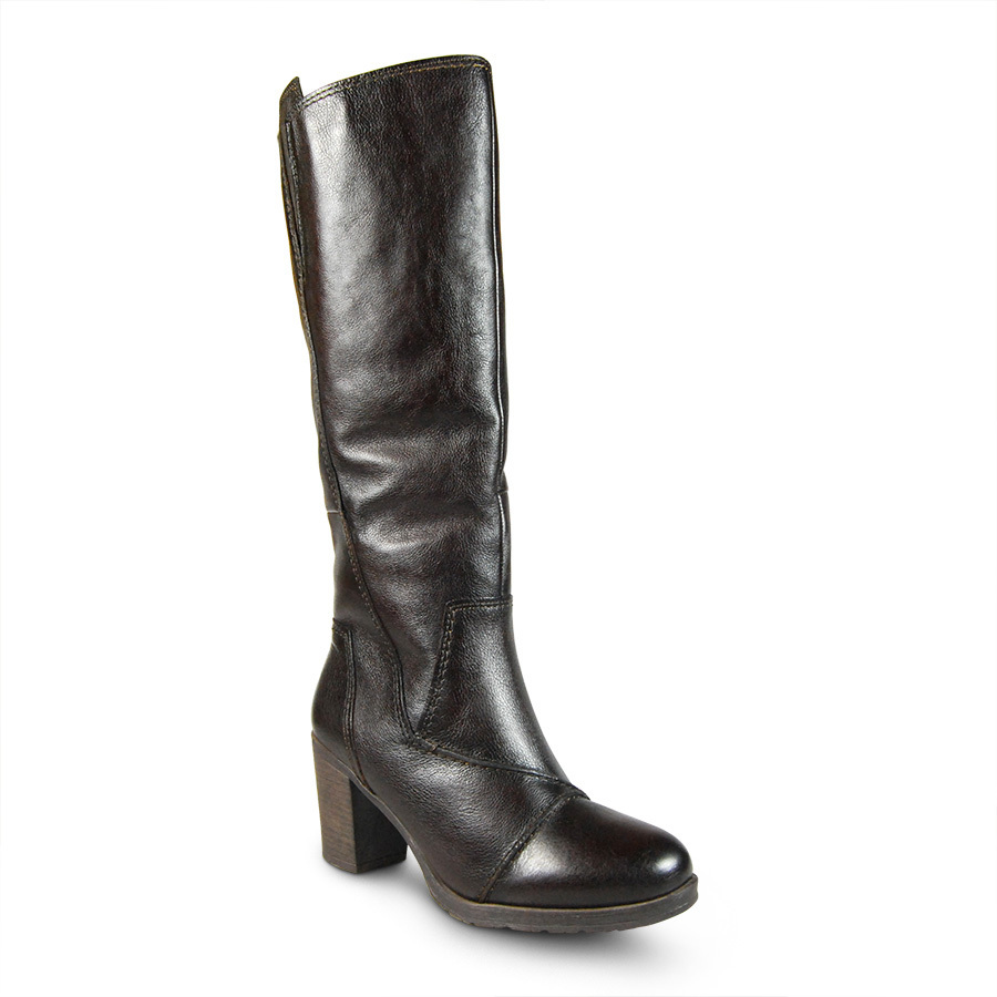 Материал верха: натуральная плотная кожа. Материал подкладки: натуральная шерсть. Голенище высотой 38 см, обхват 40 см + резинки для расширения. Каблук 7.5 см.
